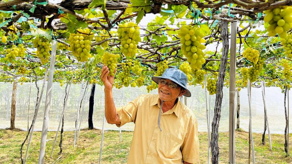Ông Ba Mọi trong vườn nho xanh đang cho thu hoạch