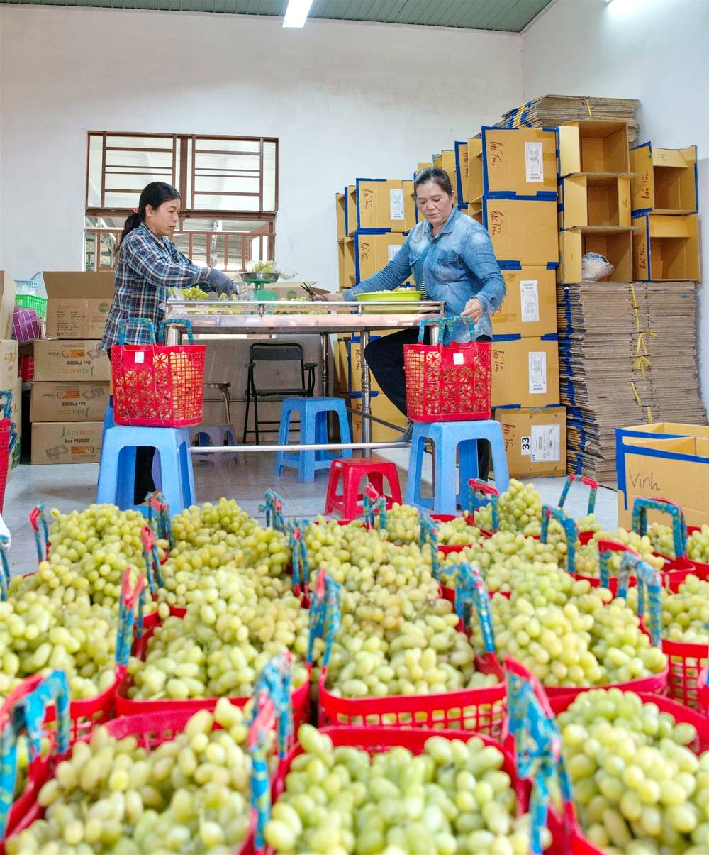 Nho trồng tại trang trại nho Ba Mọi được thu hoạch và sơ chế, đóng thùng