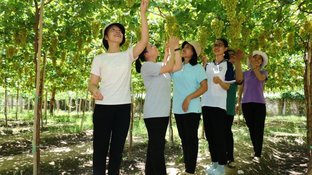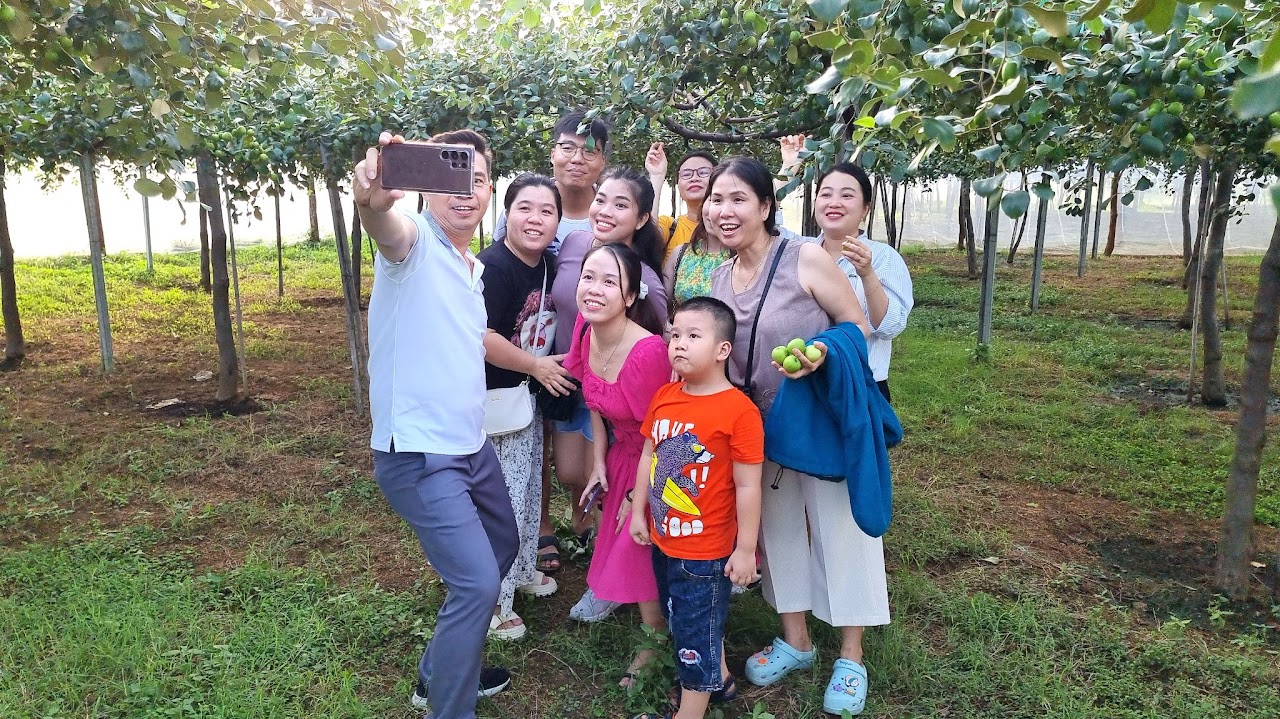 Không dừng lại ở sản xuất, Trang trại nho Ba Mọi đã trở thành một điểm du lịch trải nghiệm hấp dẫn – nơi du khách không chỉ tham quan, mà còn “chạm” vào quy trình làm nông sạch.
